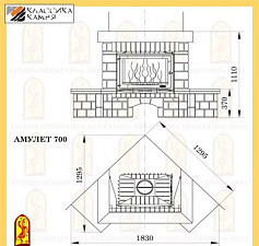 Предтопочная и надтопочная часть выложена шамотом песочно-жёлтого цвета. Каминная балка изготовленная из МДФ и покрытая шпоном дуба, послужит отличной полкой для каминных аксессуаров, таких как часы, канделябры, рамки с фотографиями и др. В нижней части облицовки расположена удобная ниша для хранения и сушки дров.